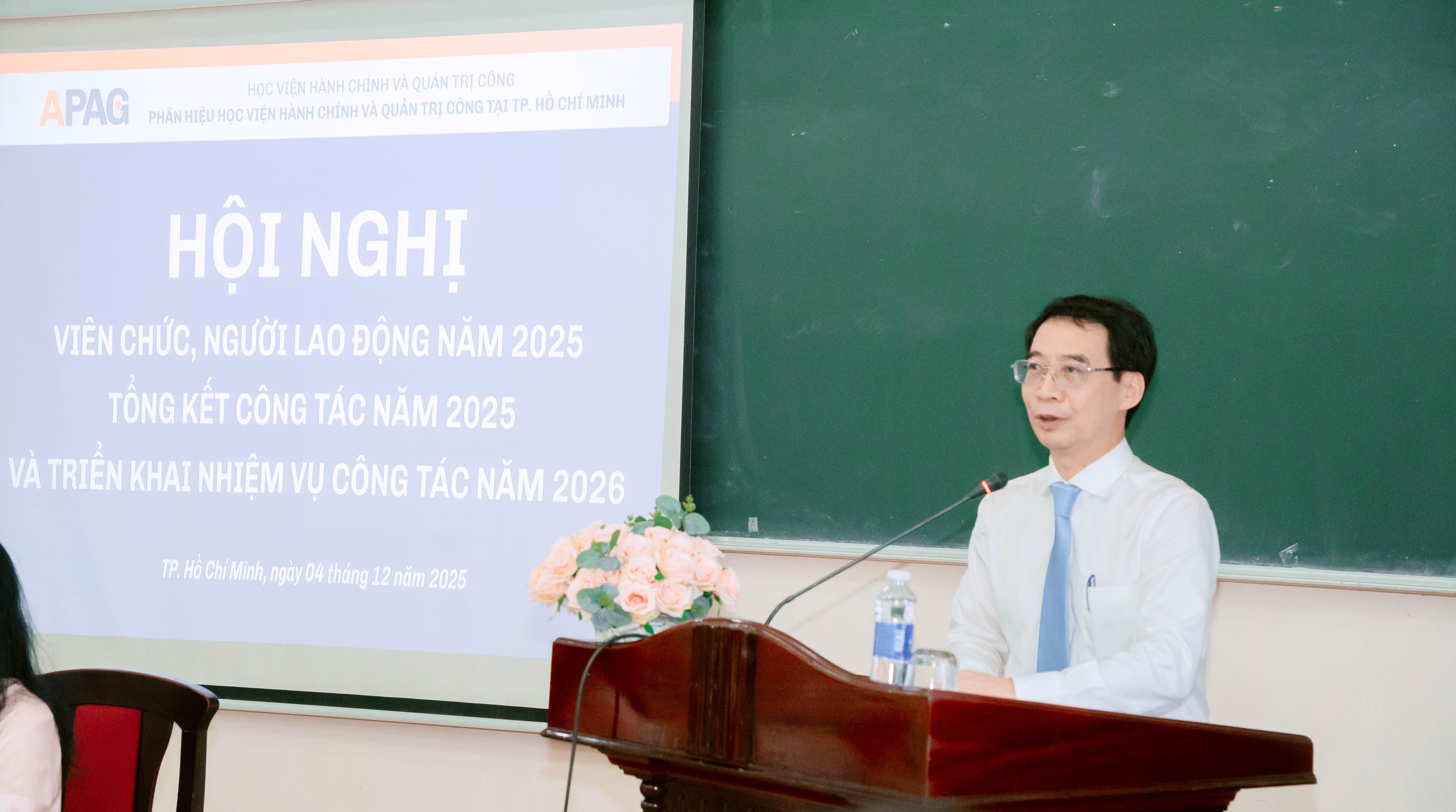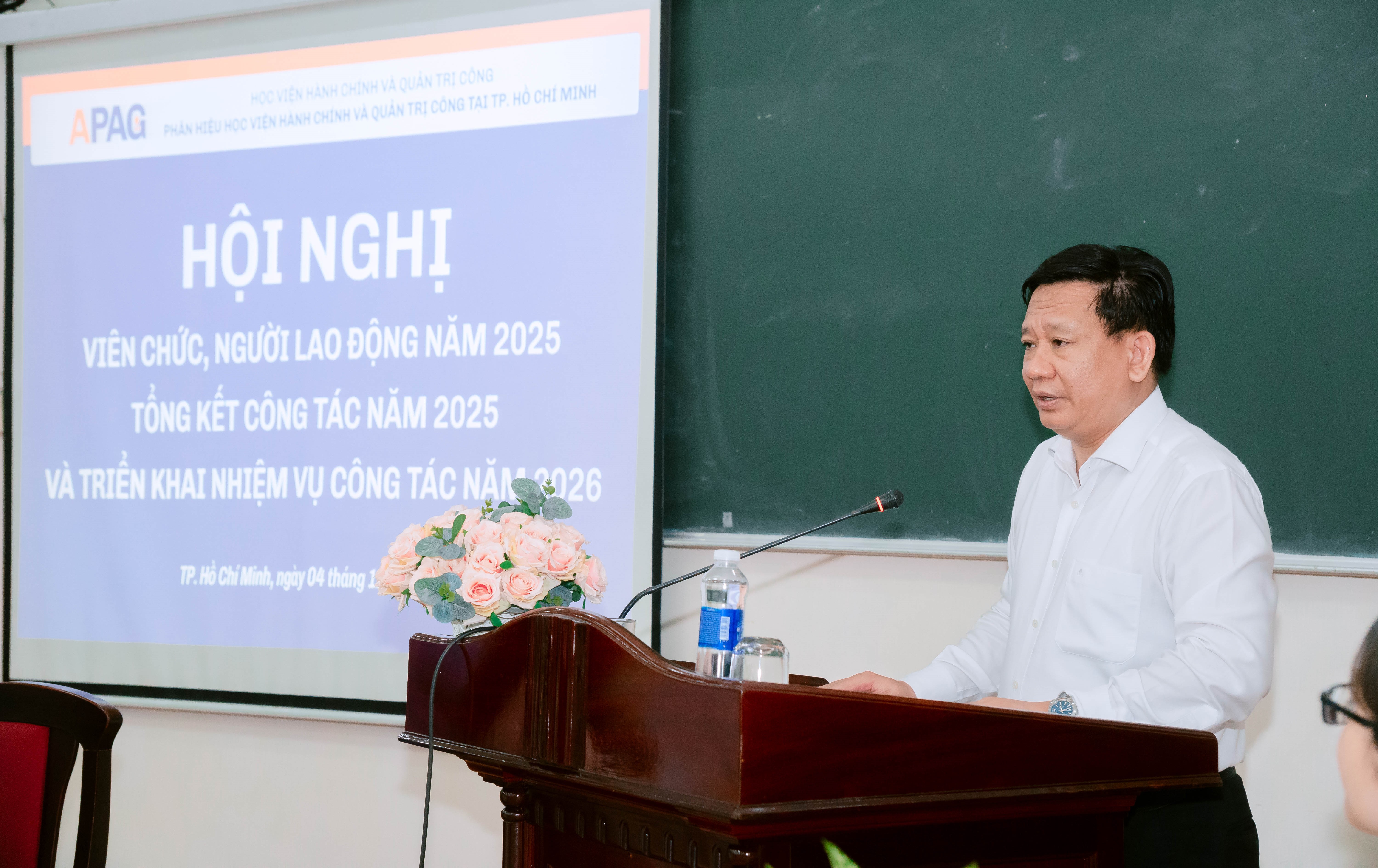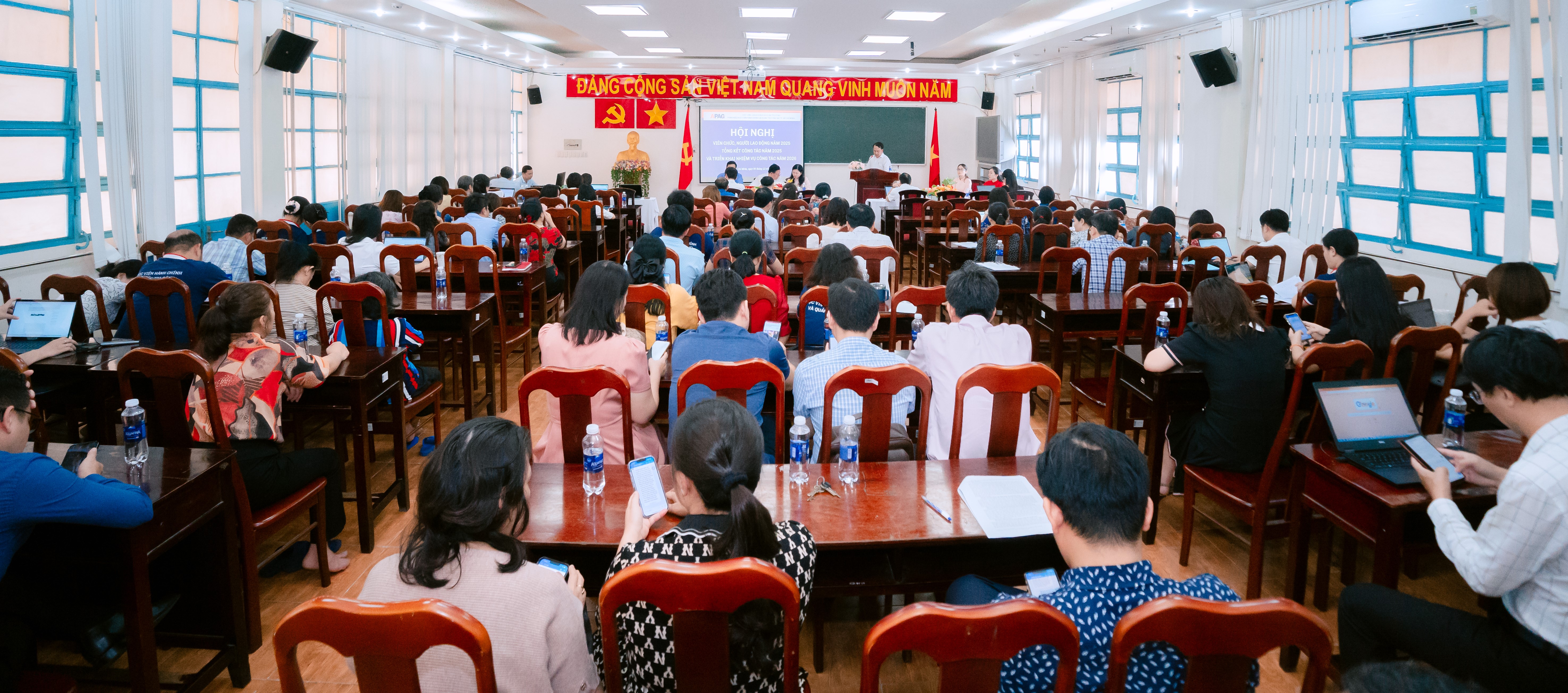 Ngày 04/12/2025, Phân hiệu Học viện Hành chính và Quản trị công tại TP. Hồ Chí Minh đã long trọng tổ chức Hội nghị viên chức, người lao động năm 2025, tổng kết công tác năm 2025 và triển khai nhiệm vụ năm 2026. Hội nghị có sự tham dự của PGS.TS. Lương Thanh Cường - Phó Bí thư Đảng ủy, Phó Giám đốc Học viện Hành chính và Quản trị công, cùng toàn thể viên chức, người lao động Phân hiệu.