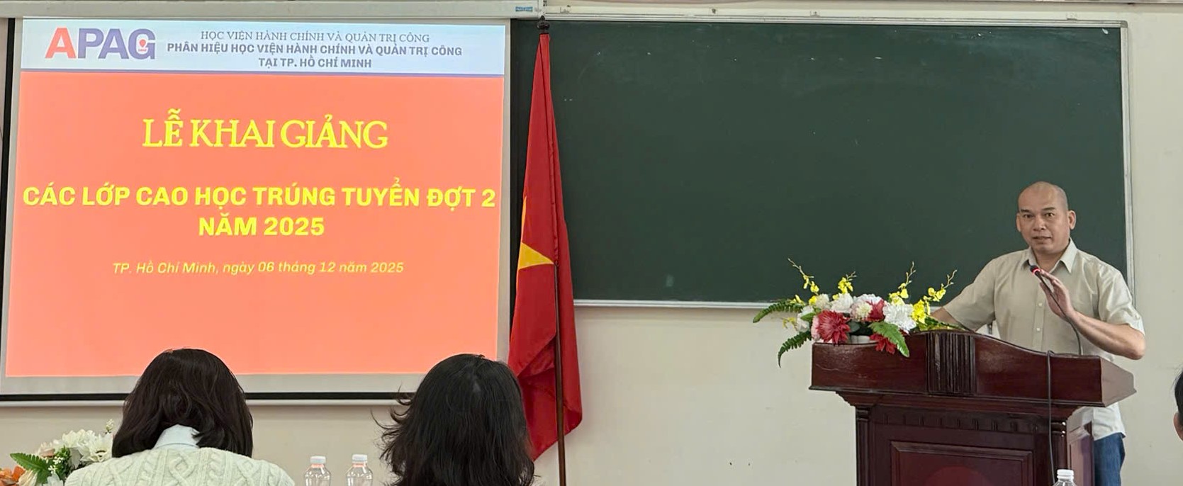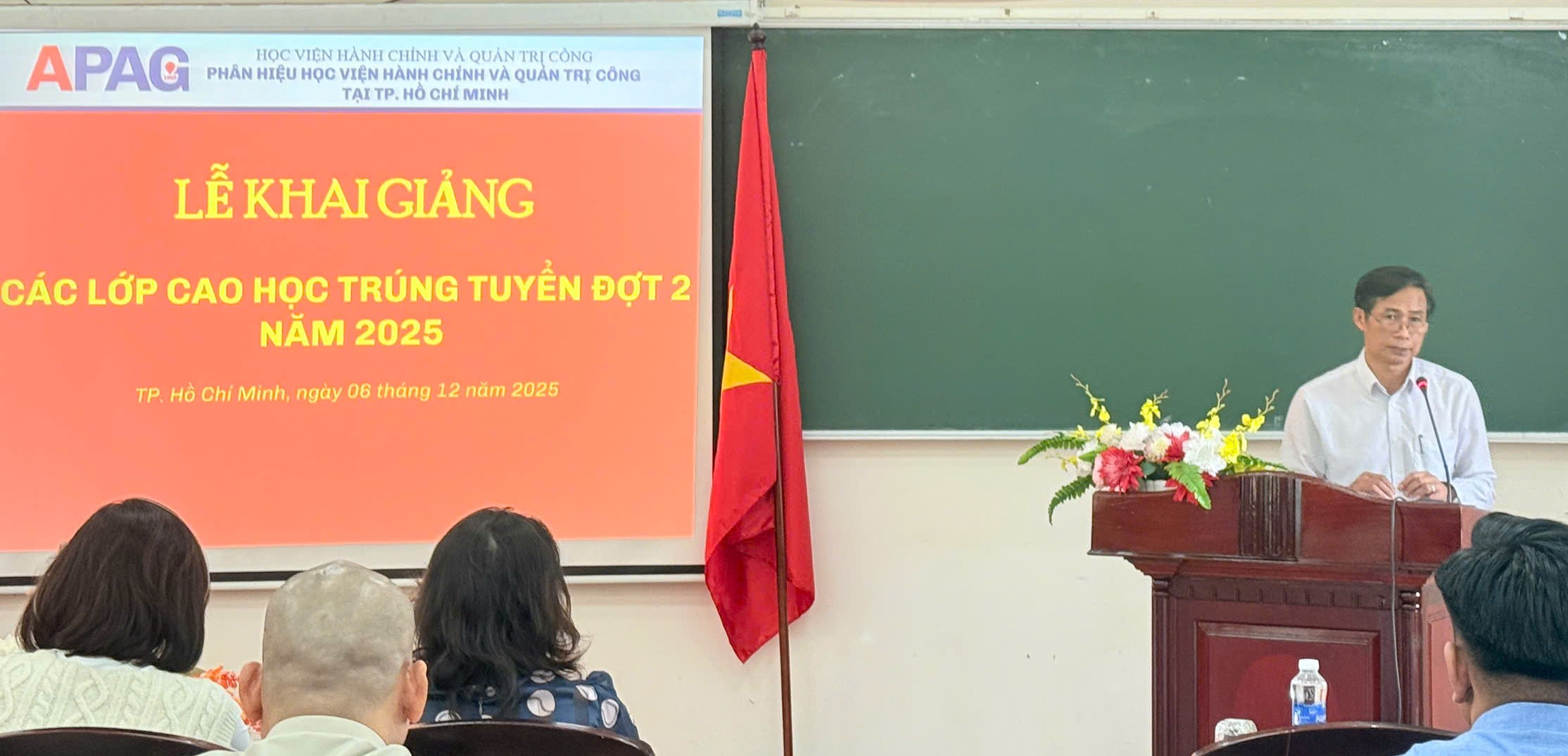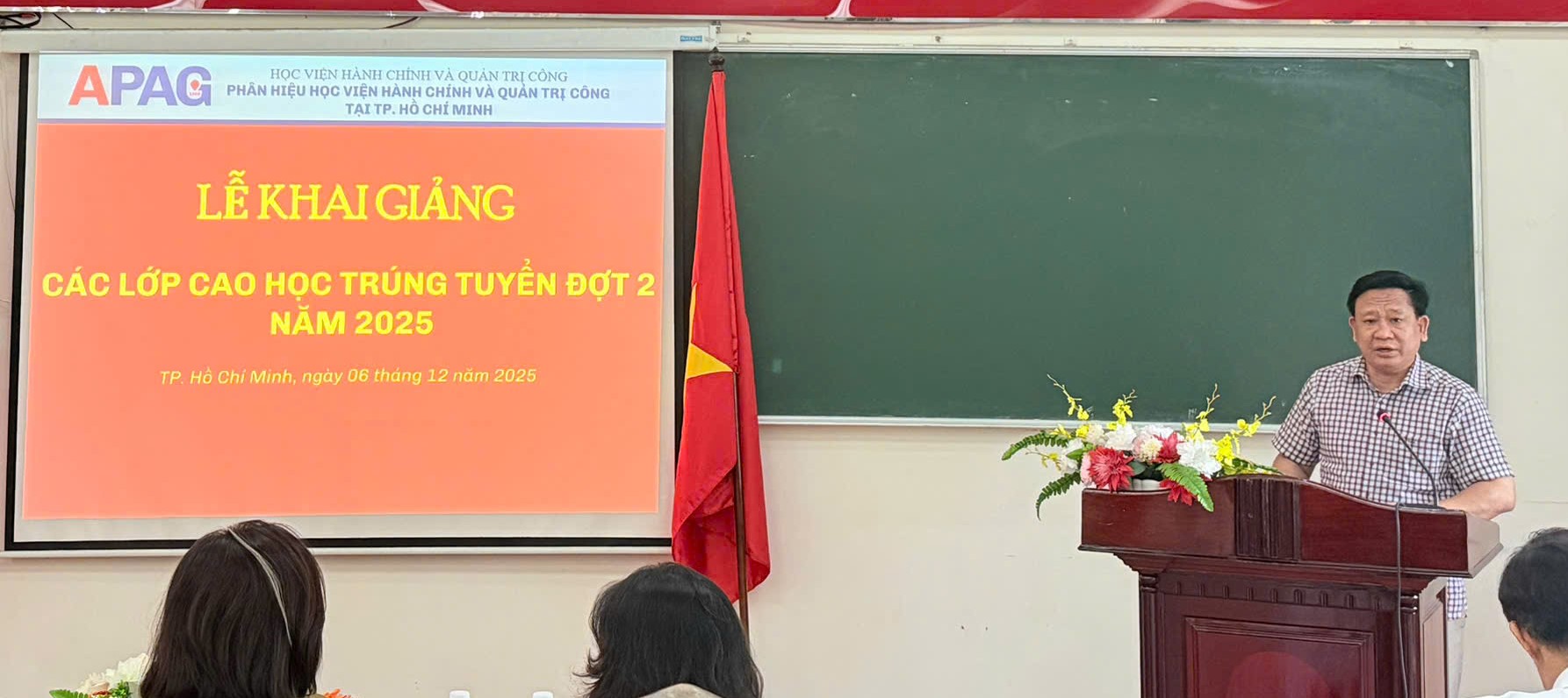 Sáng ngày 08/12/2025, Phân hiệu Học viện Hành chính và Quản trị công tại TP. Hồ Chí Minh (Phân hiệu) đã long trọng tổ chức Lễ khai giảng các lớp thạc sĩ trúng tuyển đợt 2 năm 2025. Sự kiện đánh dấu khởi đầu một hành trình học tập mới, mở ra cơ hội nâng cao tri thức, bồi dưỡng năng lực cho đội ngũ cán bộ, công chức, viên chức và những người làm công tác quản lý, quản trị công trong bối cảnh hội nhập và phát triển.