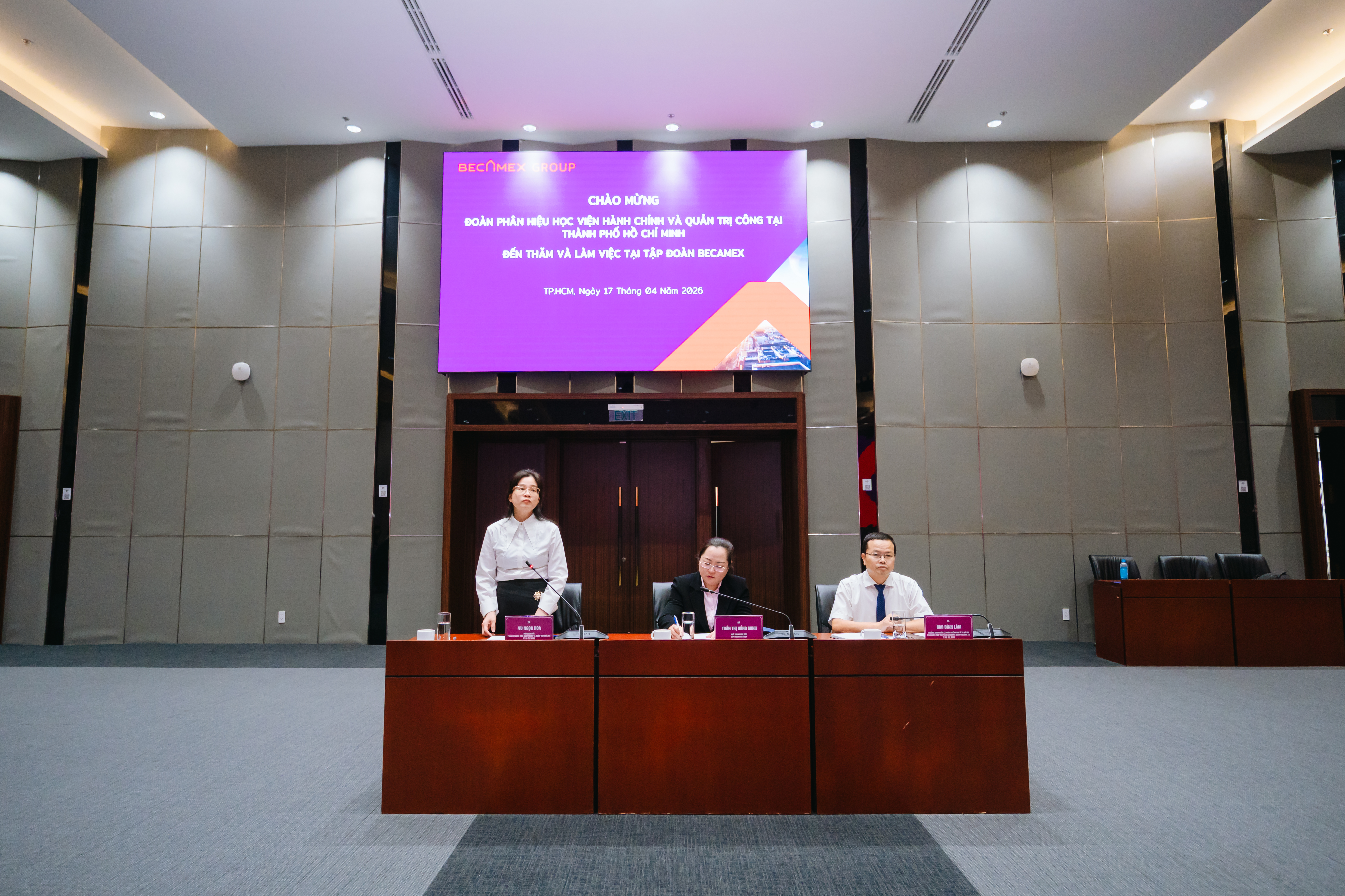 Ngày 17/4/2026, Khoa Quản lý Phát triển Kinh tế và Xã hội - Phân hiệu Học viện Hành chính và Quản trị công tại Thành phố Hồ Chí Minh đã tổ chức chương trình tham quan, học tập thực tế và làm việc với Tập đoàn Becamex tại WTC Tower, phường Bình Dương, TP.HCM. Chương trình là dịp ý nghĩa nhằm tăng cường kết nối giữa cơ sở đào tạo với doanh nghiệp, đồng thời tạo điều kiện để đội ngũ giảng viên, học viên và sinh viên tiếp cận thực tiễn quản trị, phát triển kinh tế - xã hội và hệ sinh thái đổi mới sáng tạo hiện đại.
